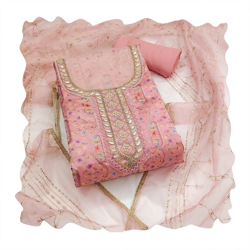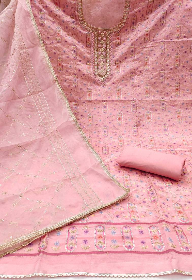| Product Description | Premium Heavy Thread Sequence Work, Handwork And Fancy Border With Embroidered Dupatta Straight Style 2.00 Mtr Unstitched Dress Material Top Of Pink Colour Viscose Organja Fabric With 2 Mtr Dull Santoon As Lining Inner Fabric Also Including 3.80 Mtr Unstiched Bottom Material Of Pink Colour Dull Santoon Fabric With 2.10 Mtr Dupatta Of Pink Colour Organja Fabric By Shadow & Saining Brand |