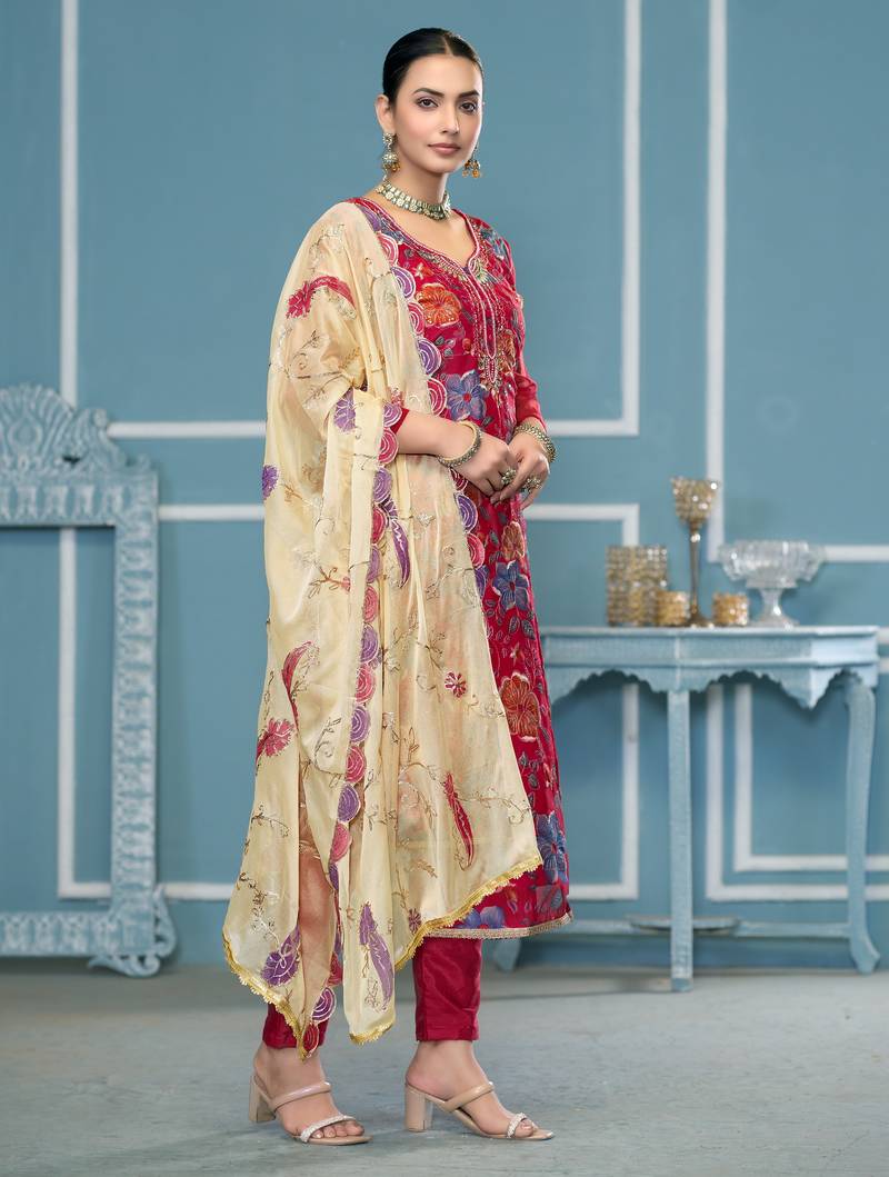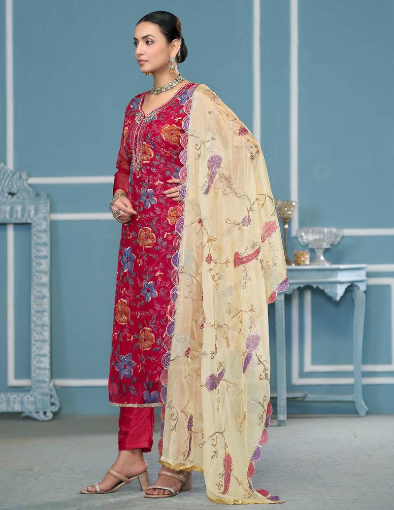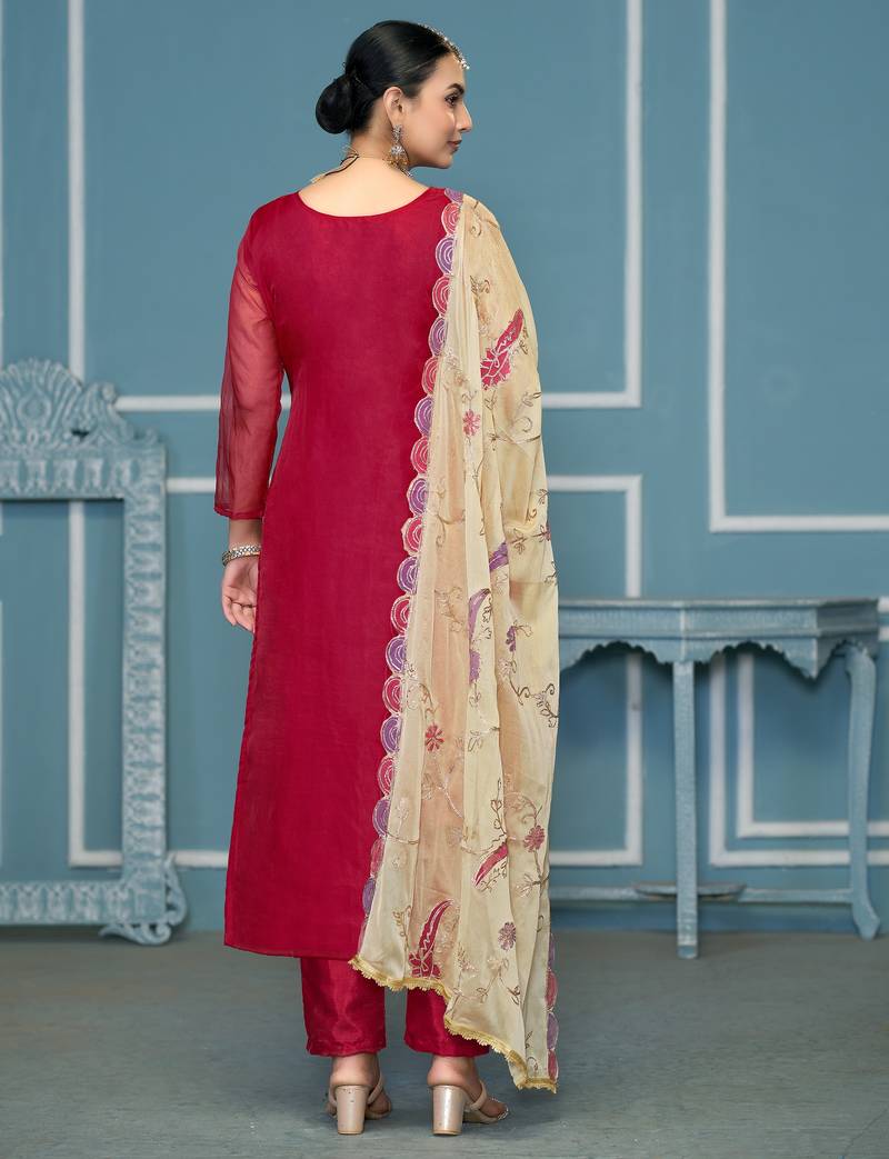 | Product Description | Handcrafted Heavy Thread Sequence Embroidered And Fancy Border With Designer Burs Embroidered Dupatta Straight Style 2.00 Mtr Unstitched Dress Material Top Of Pink Colour Viscose Organja Fabric With 2 Mtr Dull Santoon As Lining Inner Fabric Also Including 3.80 Mtr Unstiched Bottom Material Of Pink Colour Dull Santoon Fabric With 2.10 Mtr Dupatta Of Multi Colour Nazneen Fabric By Shadow & Saining Brand |