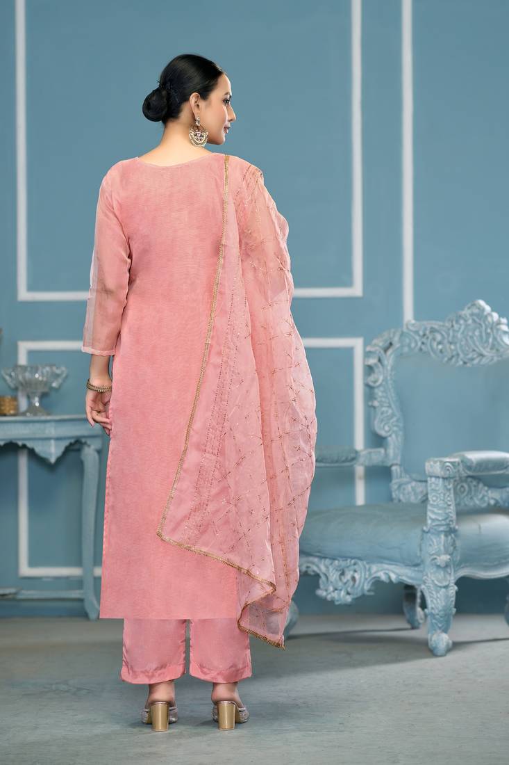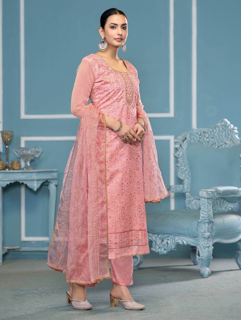 | Product Description | Sophisticated Heavy Thread Sequence Work, Handwork And Fancy Border With Embroidered Dupatta Straight Style 2.00 Mtr Unstitched Dress Material Top Of Pink Colour Viscose Organja Fabric With 2 Mtr Dull Santoon As Lining Inner Fabric Also Including 3.80 Mtr Unstiched Bottom Material Of Pink Colour Dull Santoon Fabric With 2.10 Mtr Dupatta Of Pink Colour Organja Fabric By Shadow & Saining Brand |