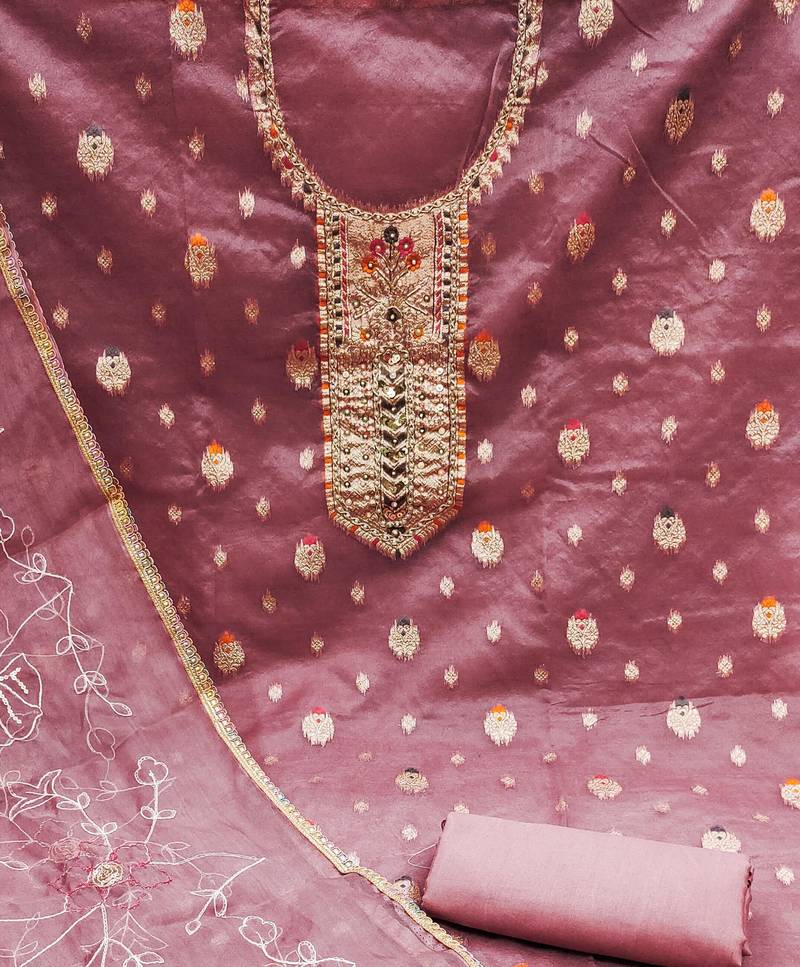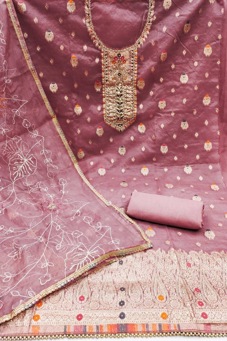 Pink organza woven dress material unstitched