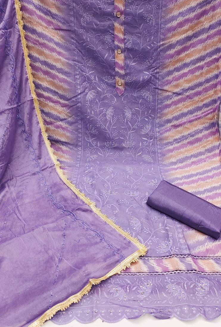 | Product Description | Premium Heavy Thread Embroidery,Daimond, Designer Digital Print And Fancy Border With Embroidered Dupatta Straight Style 2.00 Mtr Unstitched Dress Material Top Of Purple Colour Modal Chanderi Fabric With 2 Mtr Dull Santoon As Lining Inner Fabric Also Including 3.80 Mtr Unstiched Bottom Material Of Purple Colour Dull Santoon Fabric With 2.10 Mtr Dupatta Of Purple Colour Nazneen Fabric By Shadow & Saining Brand |