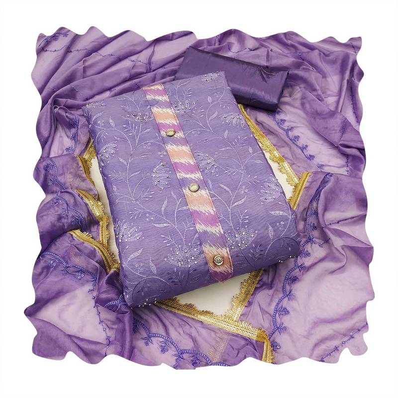 | Product Name | Purple Embroidered Chanderi Semi Stitched Churidar Dress Materials | |