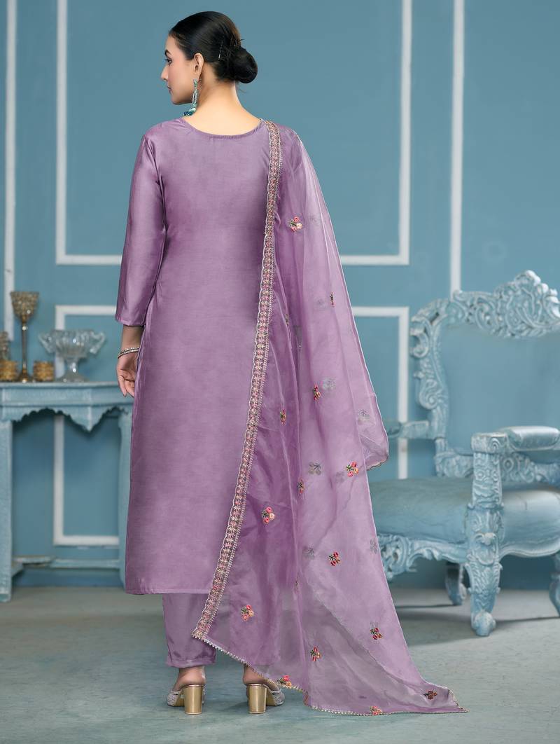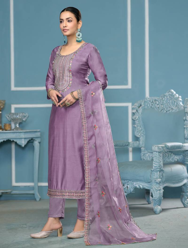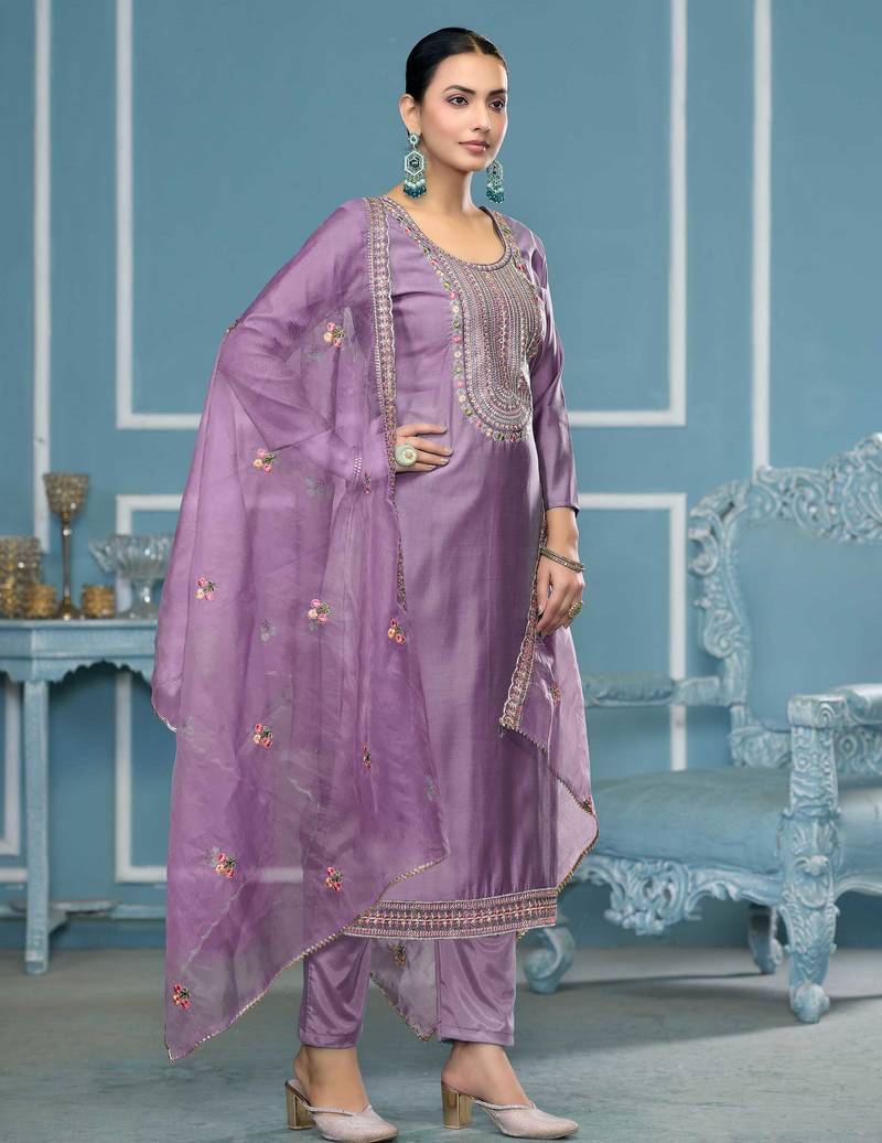 | Product Description | Luxury Heavy Multi Zari Embroidery And Fancy Border With Embroidered Dupatta Straight Style 2.00 Mtr Unstitched Dress Material Top Of Purple Colour Roman Cotton Silk Fabric Also Including 2.40 Mtr Chudidar Style Bottom Piece Material Of Purple Colour Dull Santoon Fabric With 2.10 Mtr Dupatta Of Purple Colour Organja Fabric By Shadow & Saining Brand |