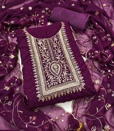 Purple embroidered georgette semi stitched churidar dress-materials