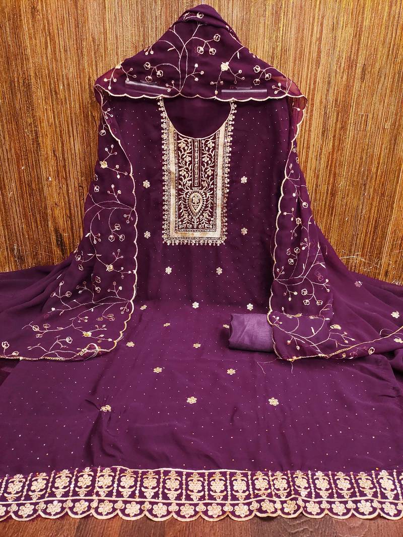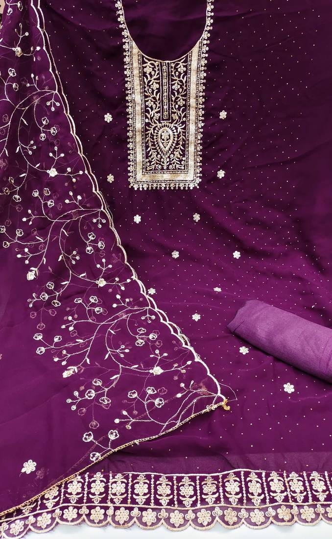 | Product Name | Purple Embroidered Georgette Semi Stitched Churidar Dress Materials | |