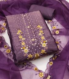 Purple embroidered viscose semi stitched churidar dress-materials