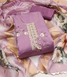 Purple silk blend hand embroidery dress material unstitched