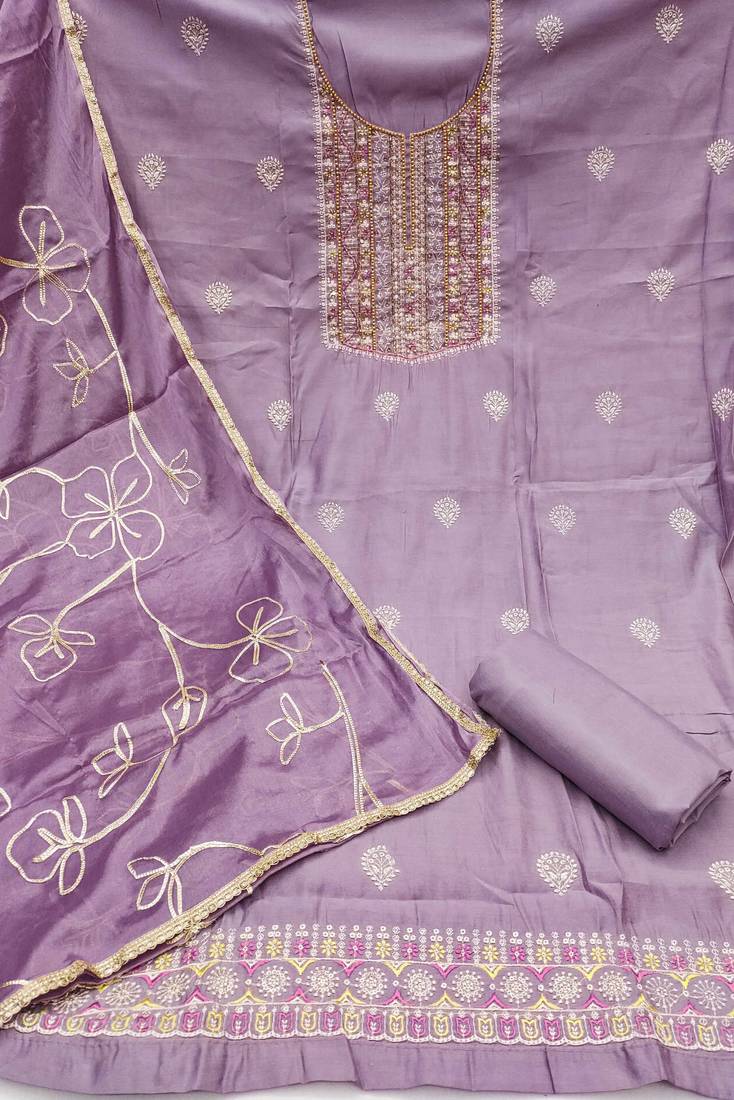 | Product Description | Regal Heavy Thread Sequence Embroidery, Stylish Handwork And Fancy Border With Gota Embroidered Dupatta Straight Style 2.00 Mtr Unstitched Dress Material Top Of Purple Colour Roamn Cotton Fabric Also Including 2.40 Mtr Chudidar Style Bottom Piece Material Of Purple Colour Dull Santoon Fabric With 2.10 Mtr Dupatta Of Purple Colour Nazneen Fabric By Shadow & Saining Brand |