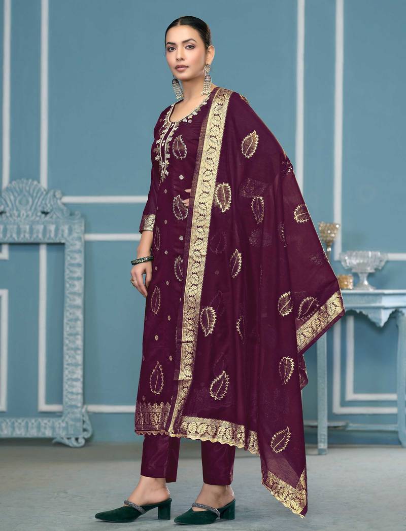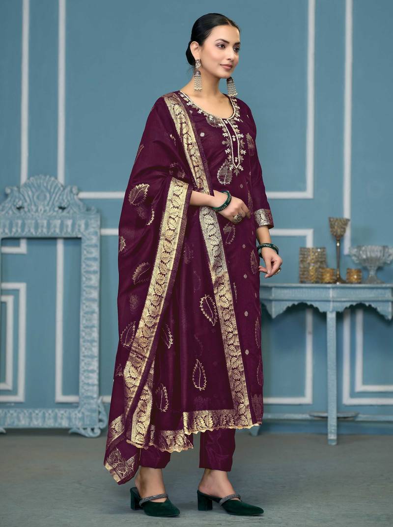 | Product Description | Ethereal Designer Weaving,Handwork And Fancy Border With Banarasi Dupatta Straight Style 2.00 Mtr Unstitched Dress Material Top Of Purple Colour Modal Banarasi Fabric With 2 Mtr Dull Santoon As Lining Inner Fabric Also Including 3.80 Mtr Unstiched Bottom Material Of Purple Colour Dull Santoon Fabric With 2.00 Mtr Dupatta Of Purple Colour Pure Banarasi Fabric By Shadow & Saining Brand |