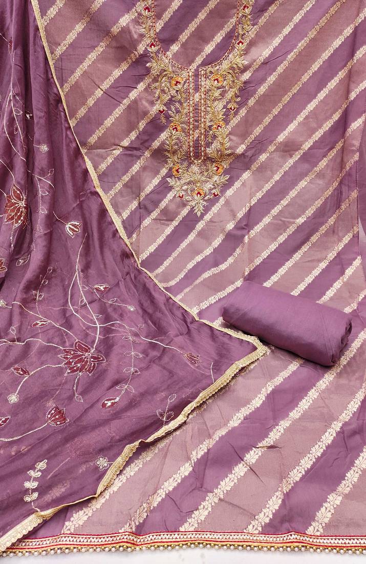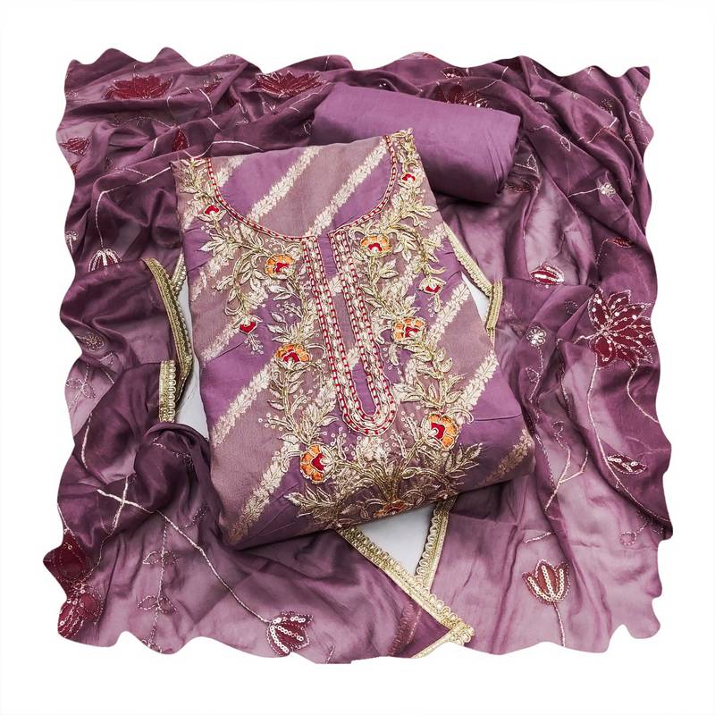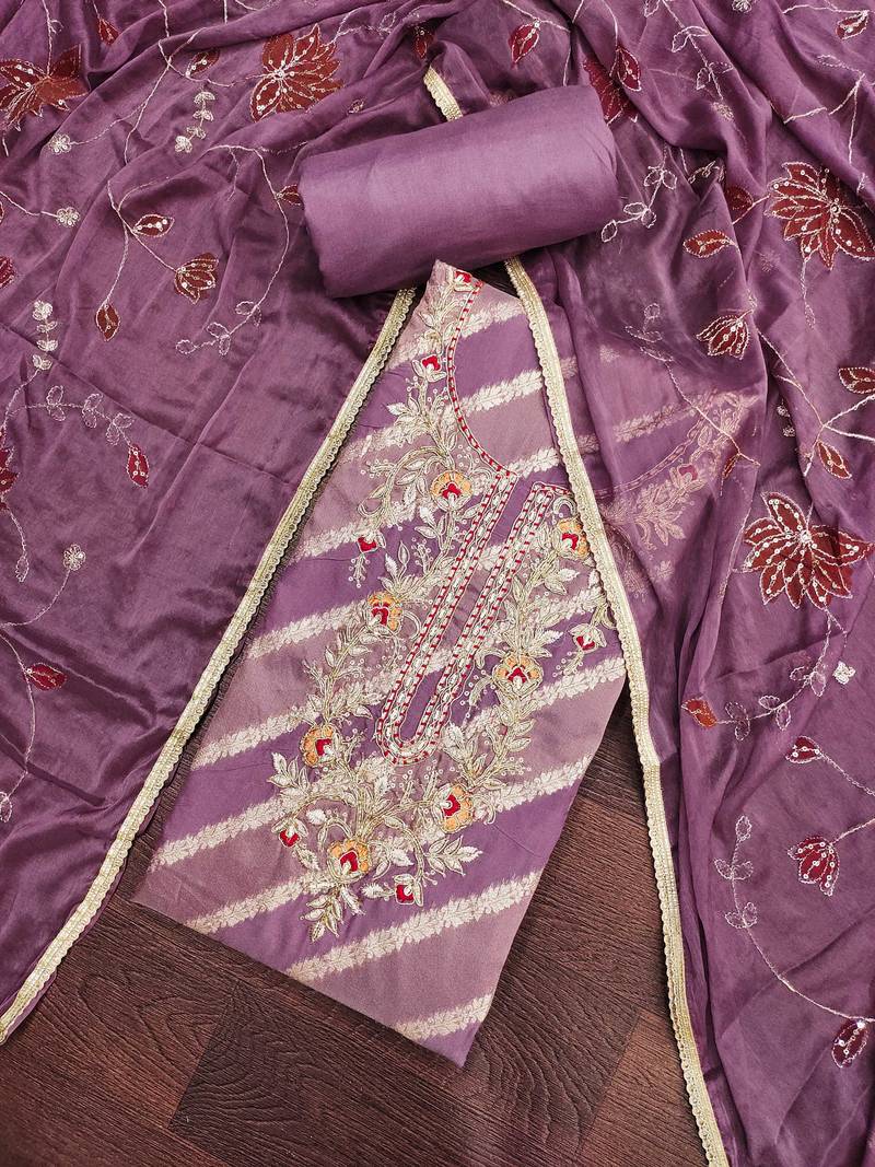 | Product Description | Elegant Designer Weaving Handwork And Fancy Border With Heavy Embroidered Dupatta Straight Style 2.00 Mtr Unstitched Dress Material Top Of Purple Colour Simmer Modal Cotton Fabric Also Including 2.40 Mtr Chudidar Style Bottom Piece Material Of Purple Colour Rayon Fabric With 2.10 Mtr Dupatta Of Purple Colour Nazneen Fabric By Shadow & Saining Brand |