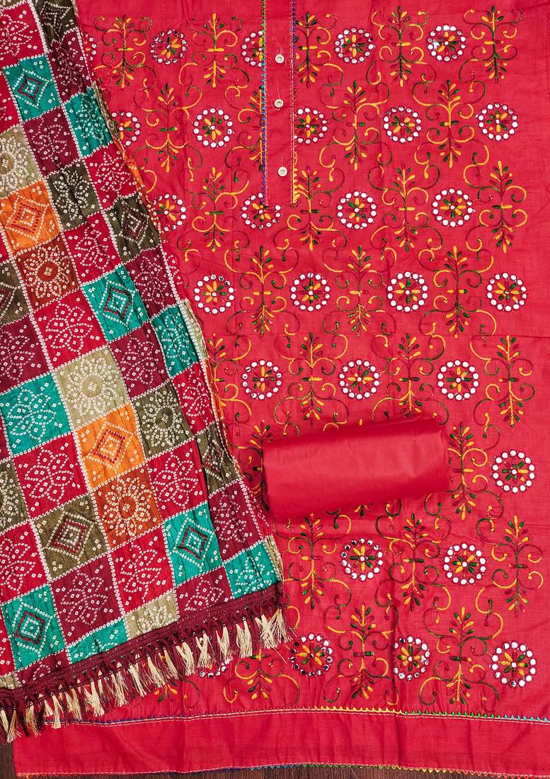 | Product Name | Red Embroidered Cotton Semi Stitched Churidar Dress Materials | |
