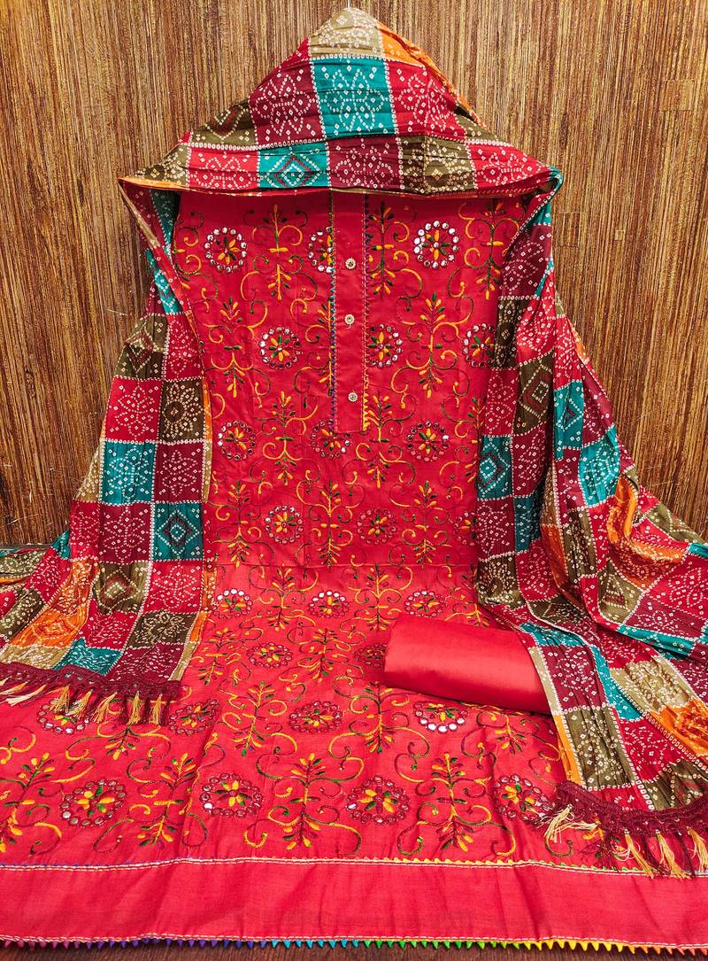 | Product Description | Festive Ready Heavy Thread Mirror Embroidery And Fancy Border With Designer Printed Dupatta Straight Style 2.00 Mtr Unstitched Dress Material Top Of Red Colour Pc Cotton Fabric Also Including 2.00 Mtr Chudidar Style Bottom Piece Material Of Red Colour Cotton Fabric With 2.00 Mtr Dupatta Of Multi Colour Chinnon Fabric By Shadow & Saining Brand |