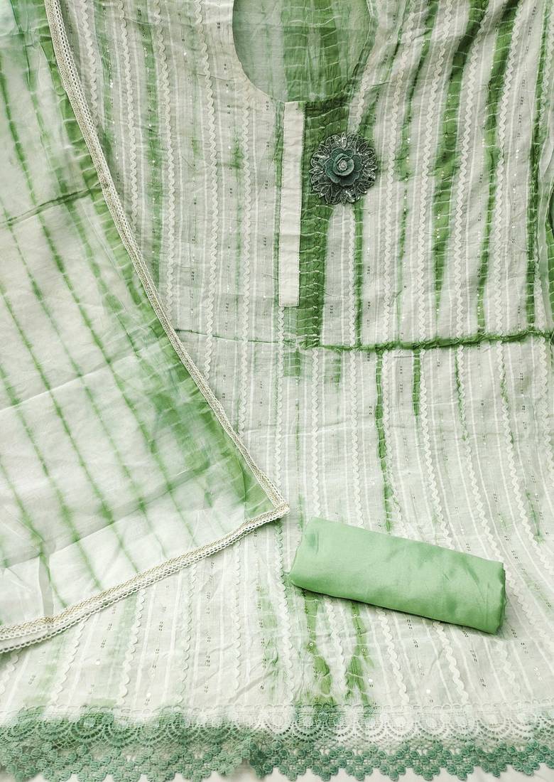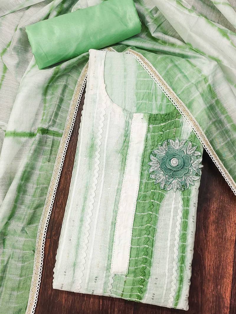 Sea green cotton sequins dress material unstitched