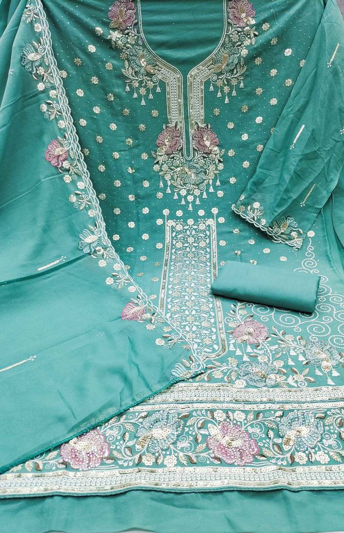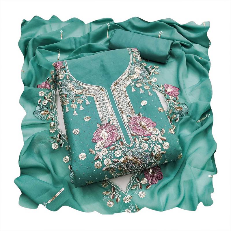 Sea-green sequins georgette semi stitched churidar dress-materials
