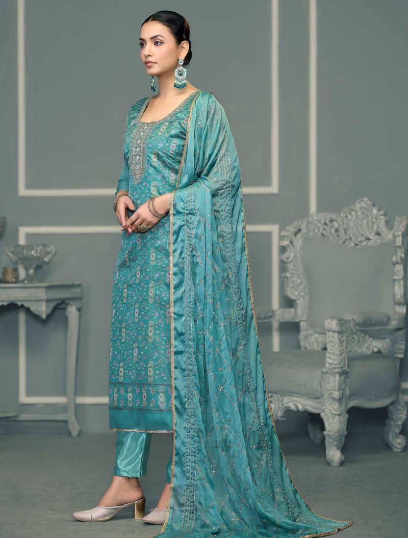 | Product Description | New Arrival Designer Print Heavy Thread Sequence Embroidery,Hand Work And Fancy Border With Embroidered Dupatta Straight Style 2.00 Mtr Unstitched Dress Material Top Of Sea Green Colour Viscose Organza Fabric With 2 Mtr Dull Santoon As Lining Inner Fabric Also Including 3.80 Mtr Unstiched Bottom Material Of Sea Green Colour Dull Santoon Fabric With 2.10 Mtr Dupatta Of Sea Green Colour Nazneen Fabric By Shadow & Saining Brand |
