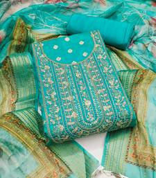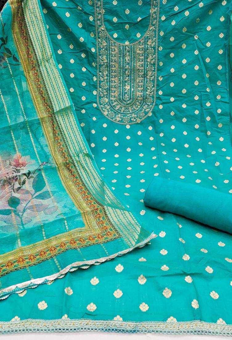 Sea-green woven banarasi semi stitched churidar dress-materials
