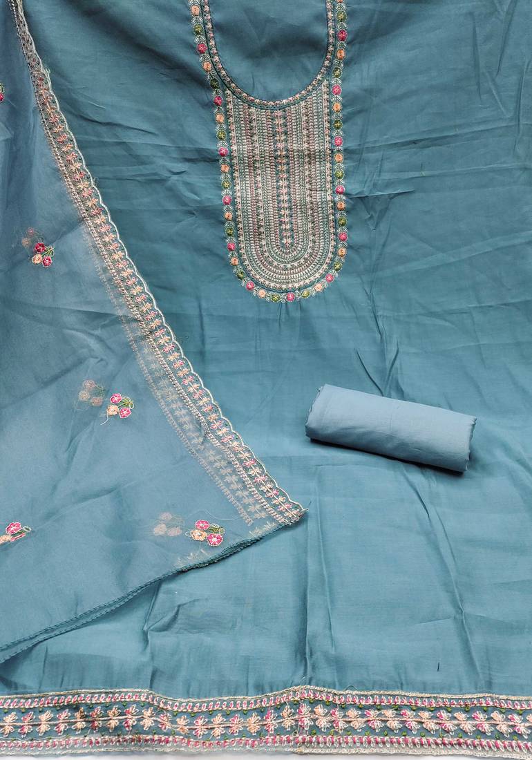 | Product Name | Sky Blue Embroidered Cotton Silk Semi Stitched Churidar Dress Materials | |