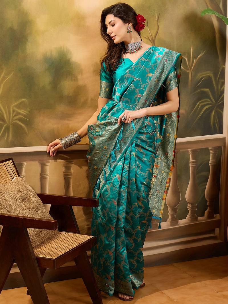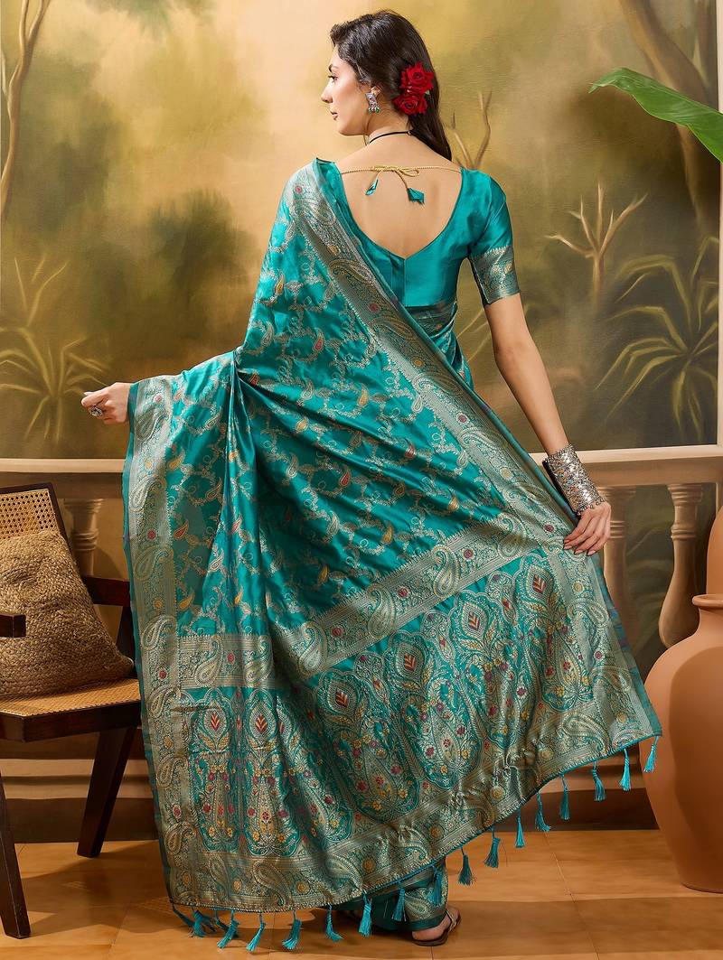 | Product Name | Teal Banarasi Jacquard Saree With Rich Zari Weaving, Mina & Lace Work On Pallu | |