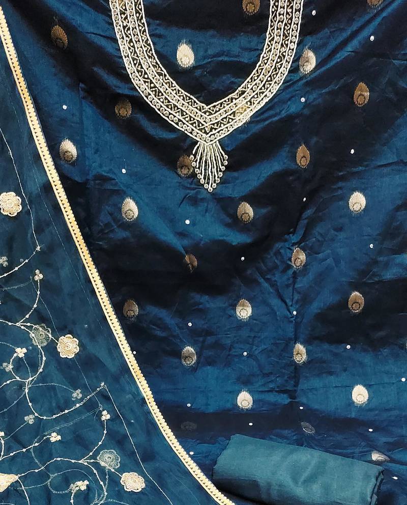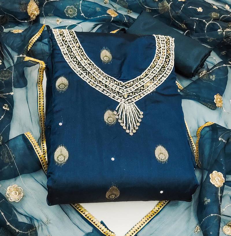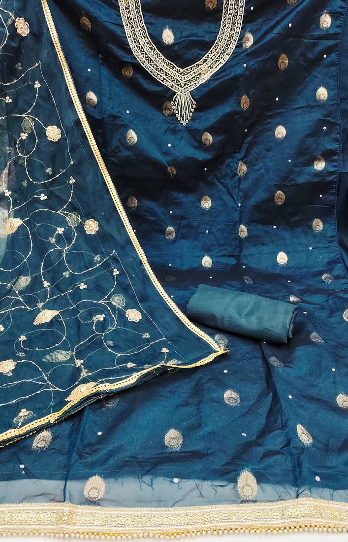 Teal organza woven dress material unstitched