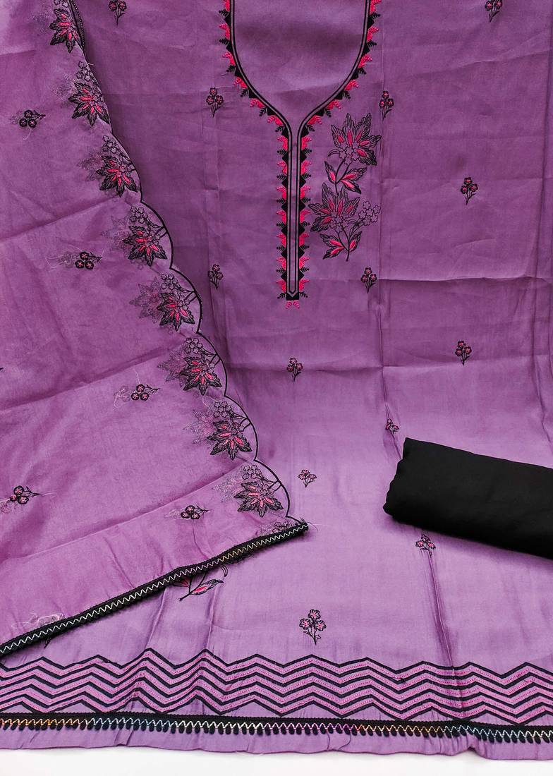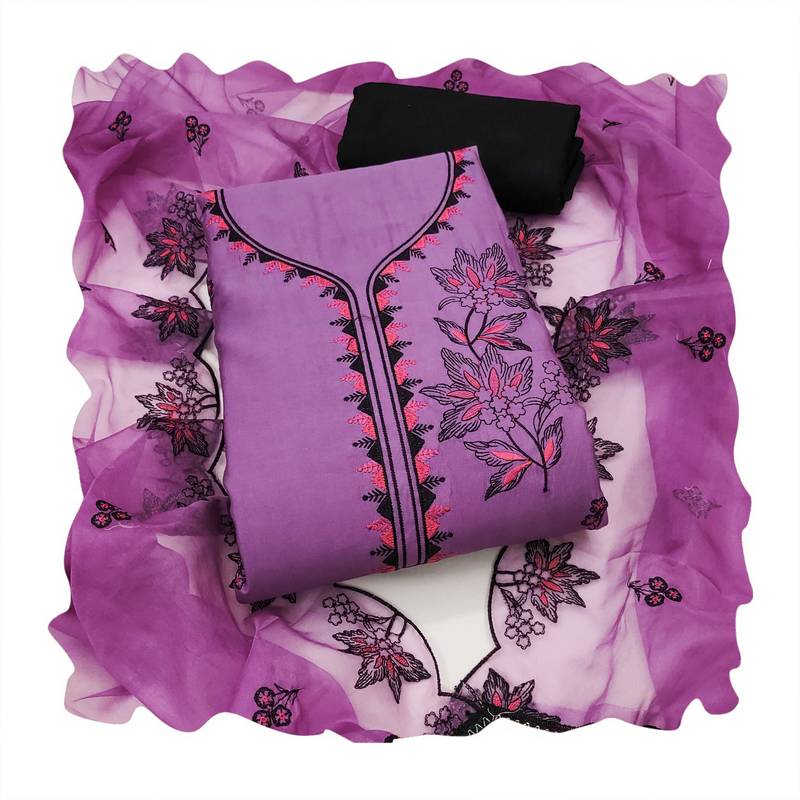| Product Description | Graceful Heavy Thread Embroidery And Fancy Border With Designer Embroidered Dupatta Straight Style 2.20 Mtr Unstitched Dress Material Top Of Voilet Colour Pure Cotton Silk Fabric Also Including 2.40 Mtr Chudidar Style Bottom Piece Material Of Black Colour Rayon Fabric With 2.10 Mtr Dupatta Of Voilet Colour Organja Fabric By Shadow & Saining Brand |
