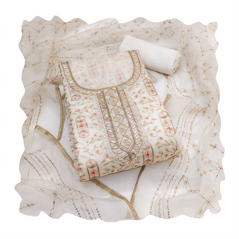 | Product Name | White Sequins Organza Semi Stitched Churidar Dress Materials | |