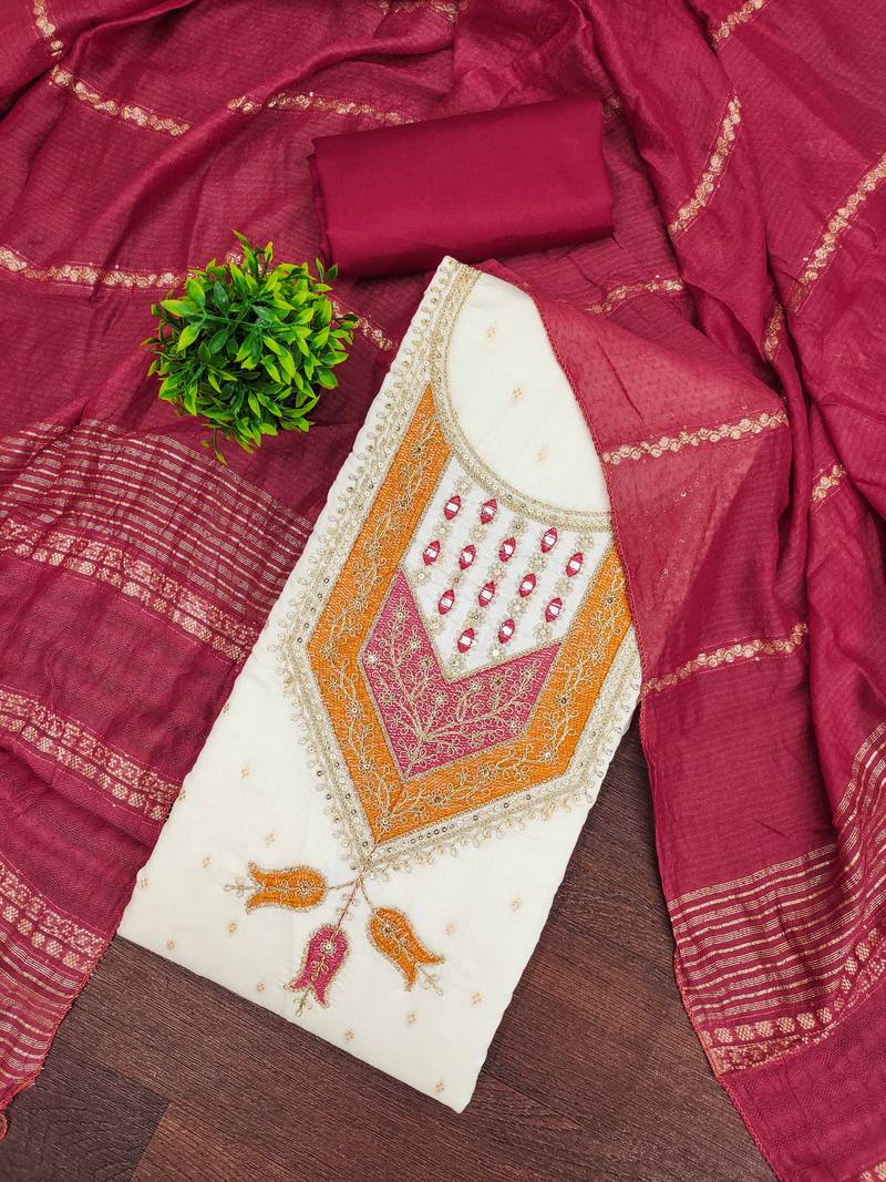 | Product Description | Elegant Heavy Weaving Thread Sequence Embroidery And Fancy Border With Designer Woven Dupatta Straight Style 2.20 Mtr Unstitched Dress Material Top Of White Colour Modal Butti Jacquard Fabric With 2 Mtr Santoon As Lining Inner Fabric Also Including 3.60 Mtr Unstiched Bottom Material Of Maroon Colour Santoon Fabric With 2.10 Mtr Dupatta Of Maroon Colour Modal Jacquard Fabric By Shadow & Saining Brand |