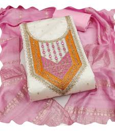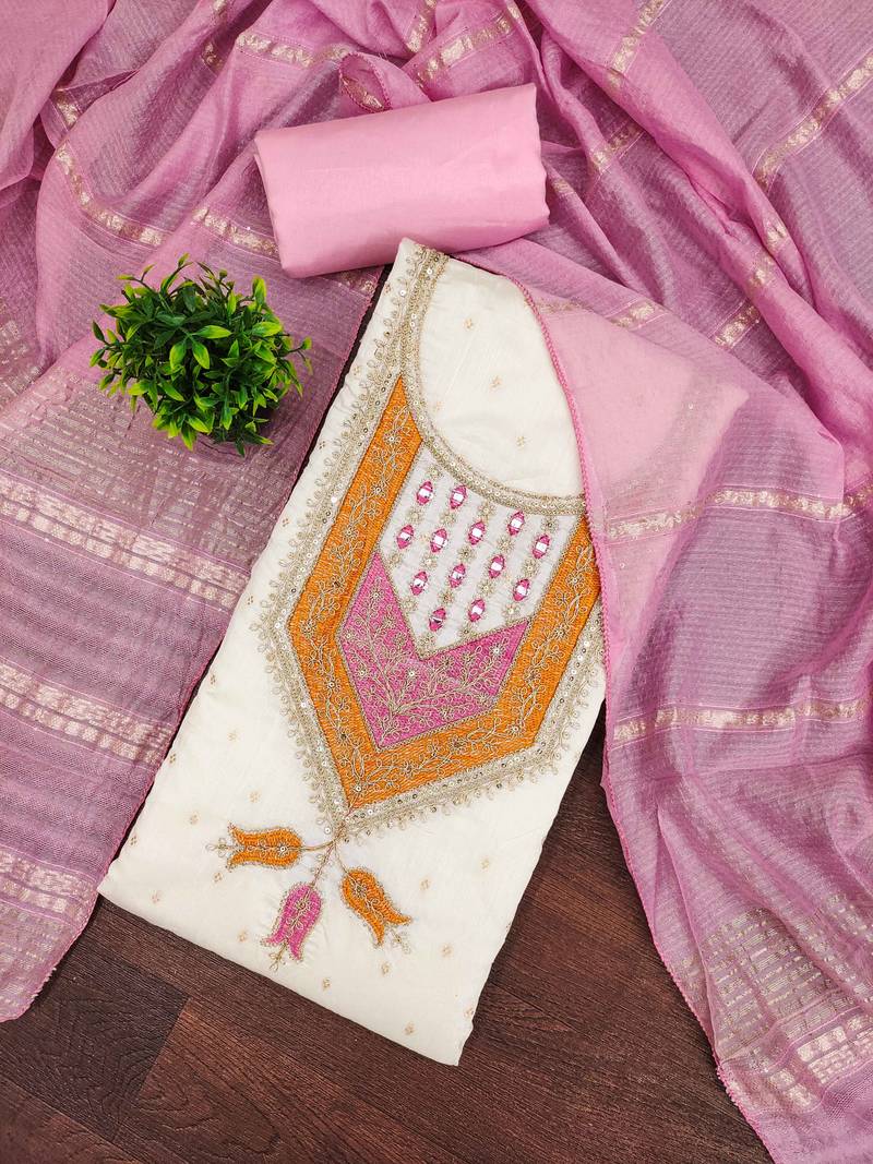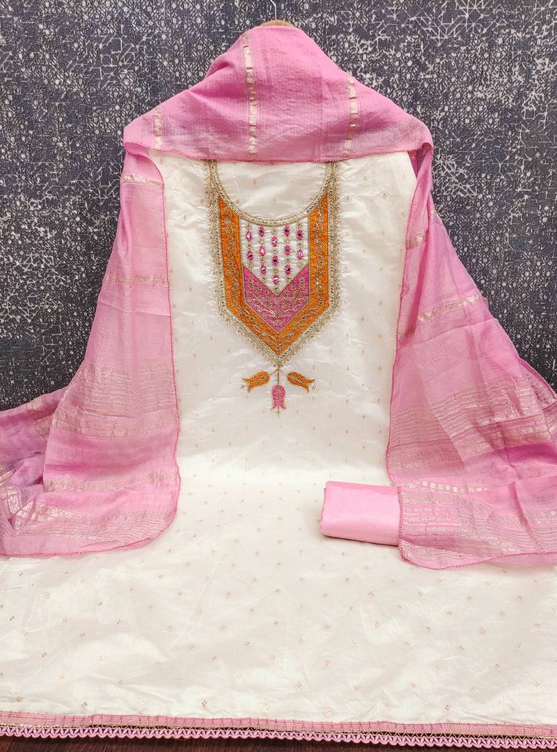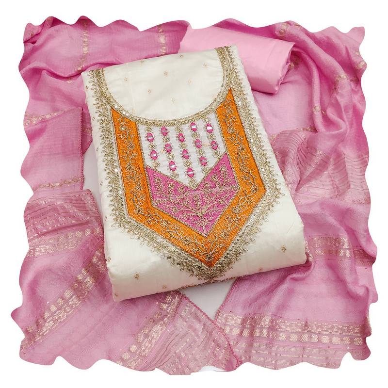 | Product Description | Statement Heavy Weaving Thread Sequence Embroidery And Fancy Border With Designer Woven Dupatta Straight Style 2.20 Mtr Unstitched Dress Material Top Of White Colour Modal Butti Jacquard Fabric With 2 Mtr Santoon As Lining Inner Fabric Also Including 3.60 Mtr Unstiched Bottom Material Of Pink Colour Santoon Fabric With 2.10 Mtr Dupatta Of Pink Colour Modal Jacquard Fabric By Shadow & Saining Brand |