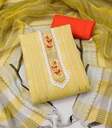 Yellow cotton hand embroidery dress material unstitched