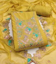 Yellow sequins cotton silk semi stitched churidar dress-materials