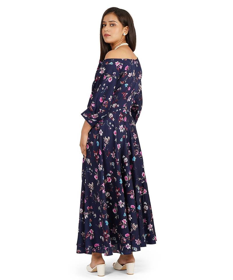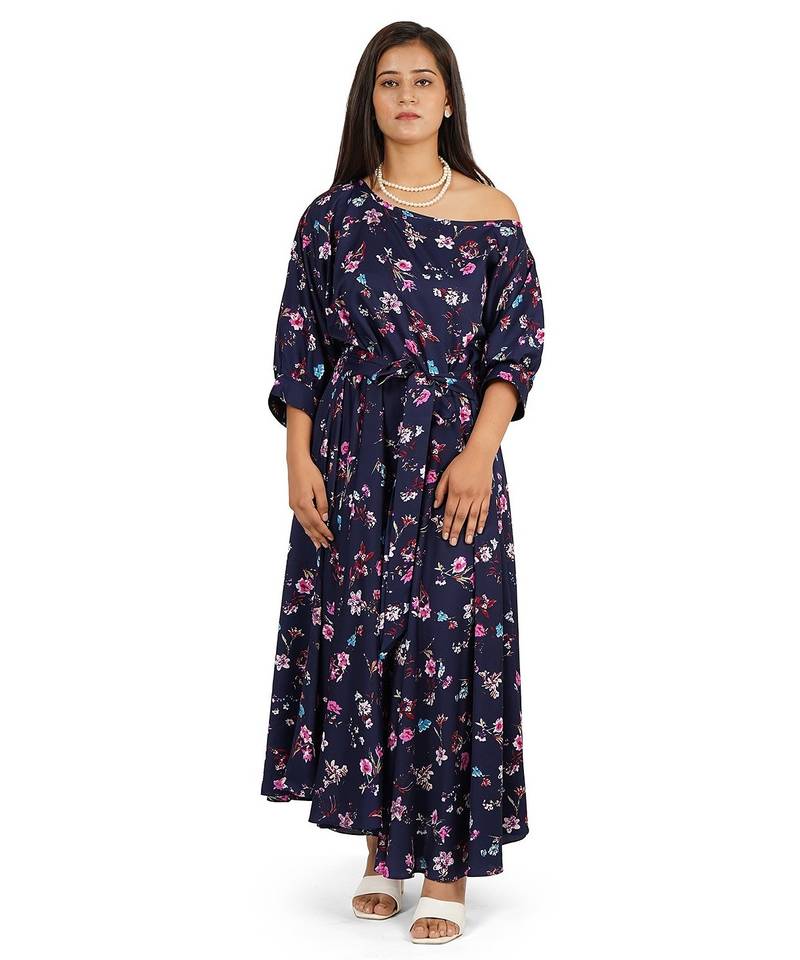 | Product Name | Blue One Side Off Shoulder Full Flare Long Dress | |