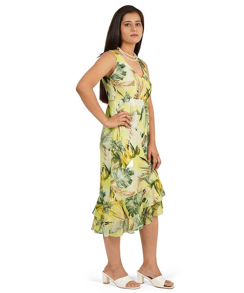 | Product Name | Green Leaves Digital Printed Ruffle Dress | |