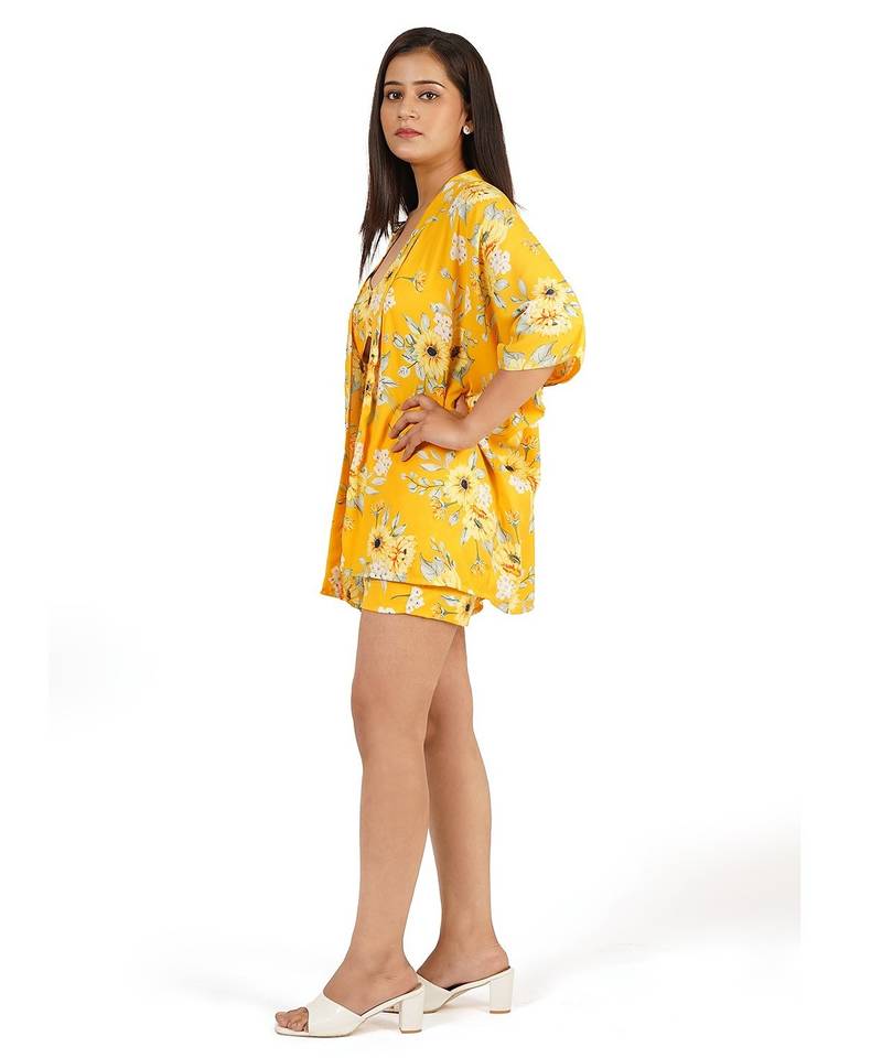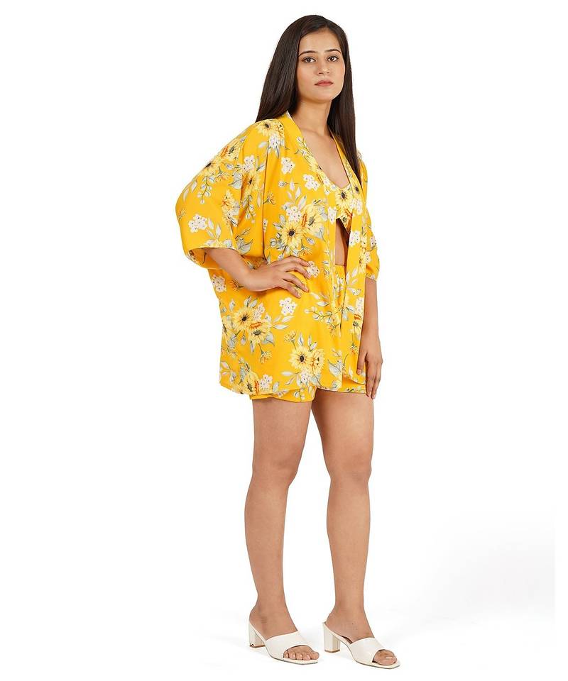 | Product Name | Yellow Printed Shorts Bustier Kaftan Jacket | |