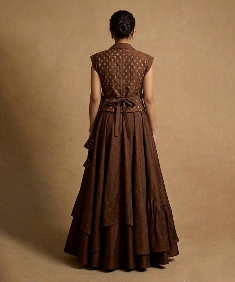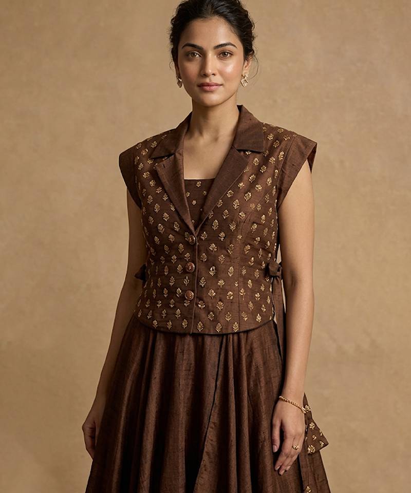 | Product Description | This Brown Raw Silk Lehenga Set Showcases Elegant Prints That Add Depth And Charm To Its Rich Texture. Designed For Comfort And Style, It Offers A Flattering Silhouette With A Graceful Fall. Ideal For Festive Gatherings, It Pairs Beautifully With Subtle Accessories For A Refined And Contemporary Look.