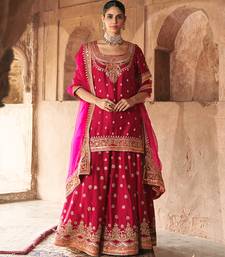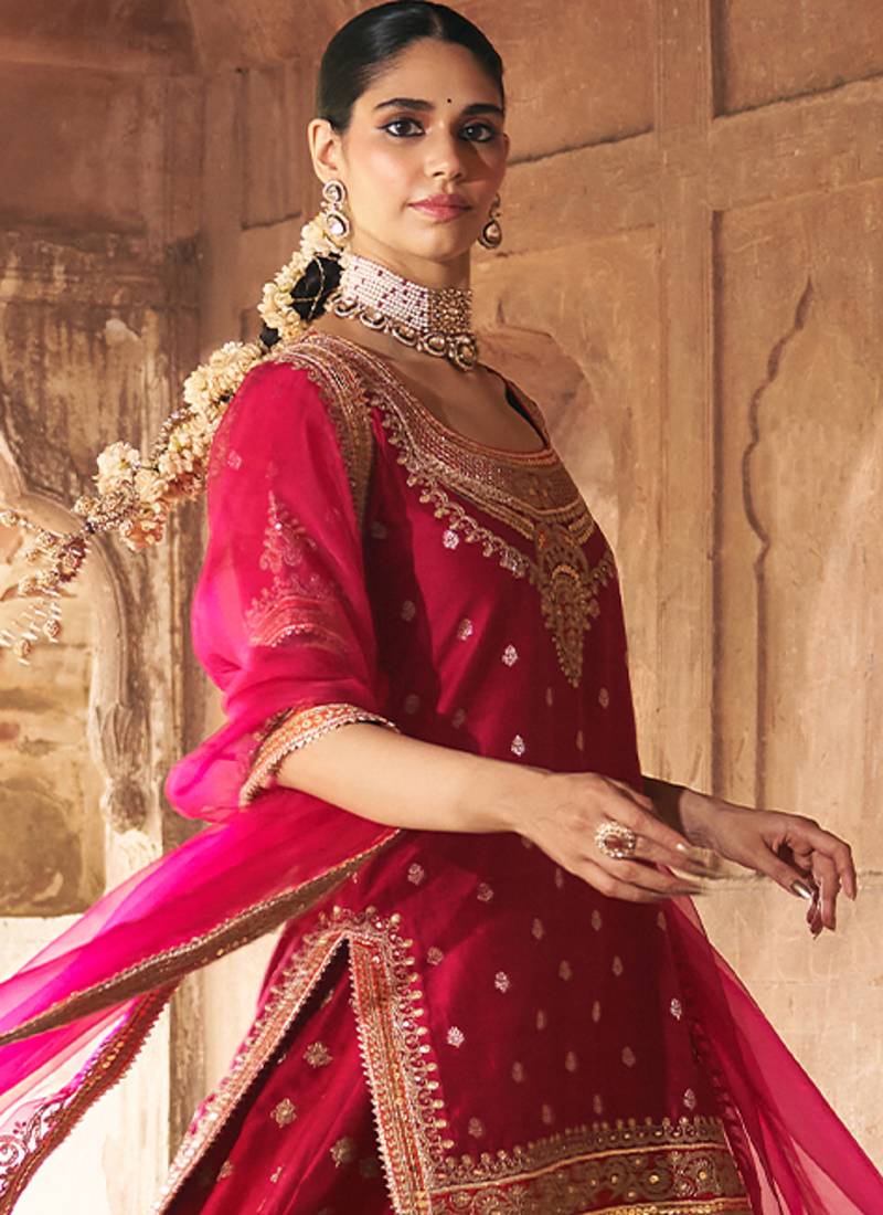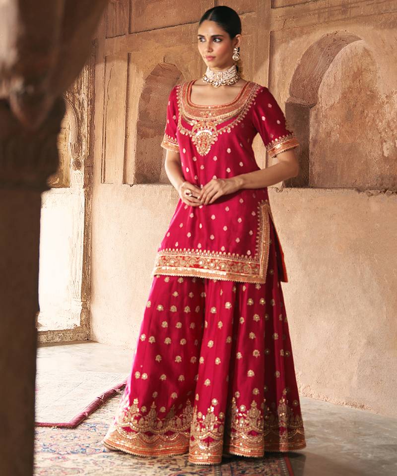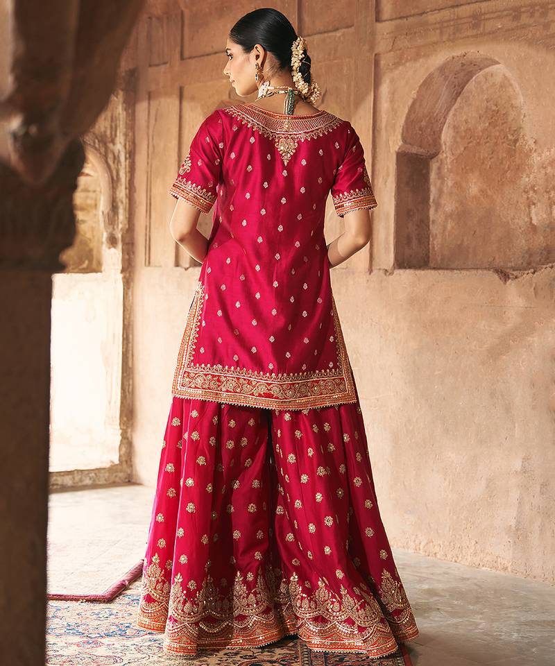 Hot pink embroidered chanderi silk sharara set