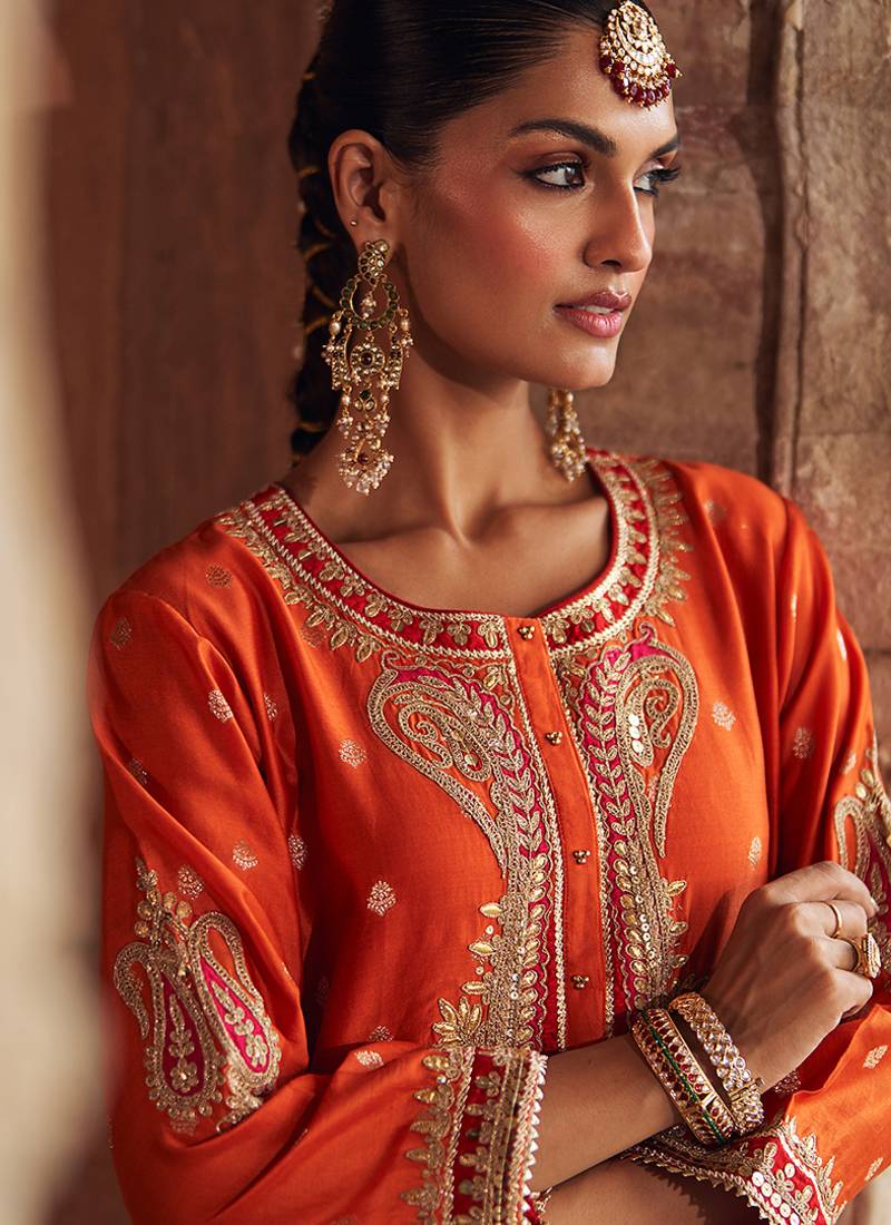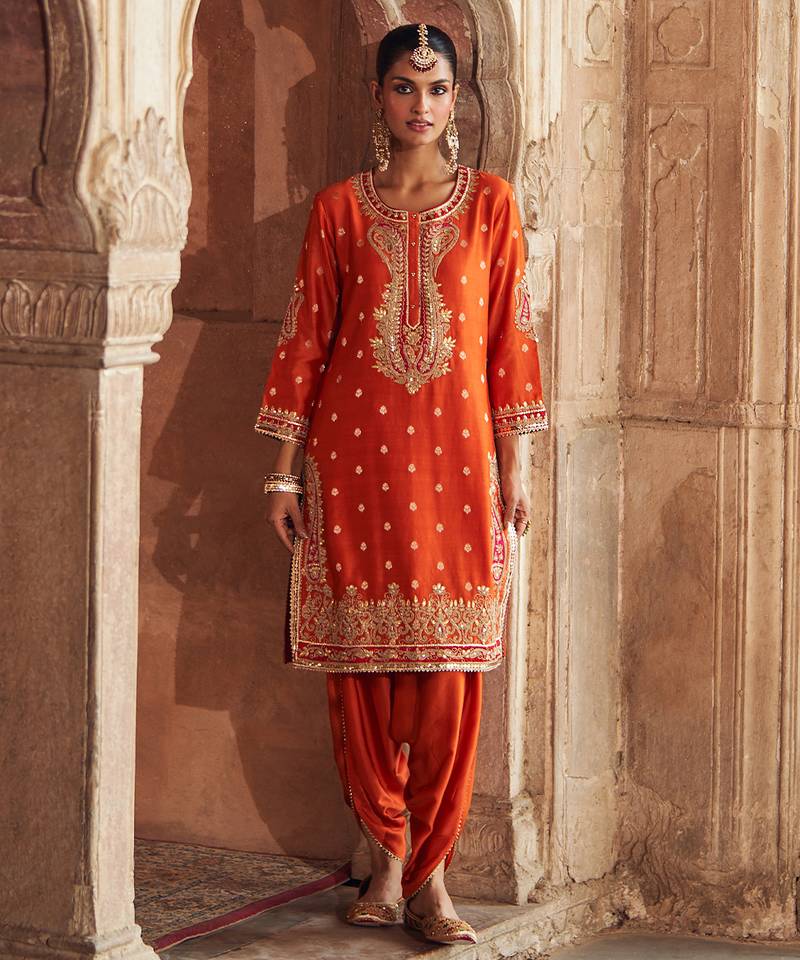 Product Name | Orange Embroidered Chanderi Silk Kurta Set | |