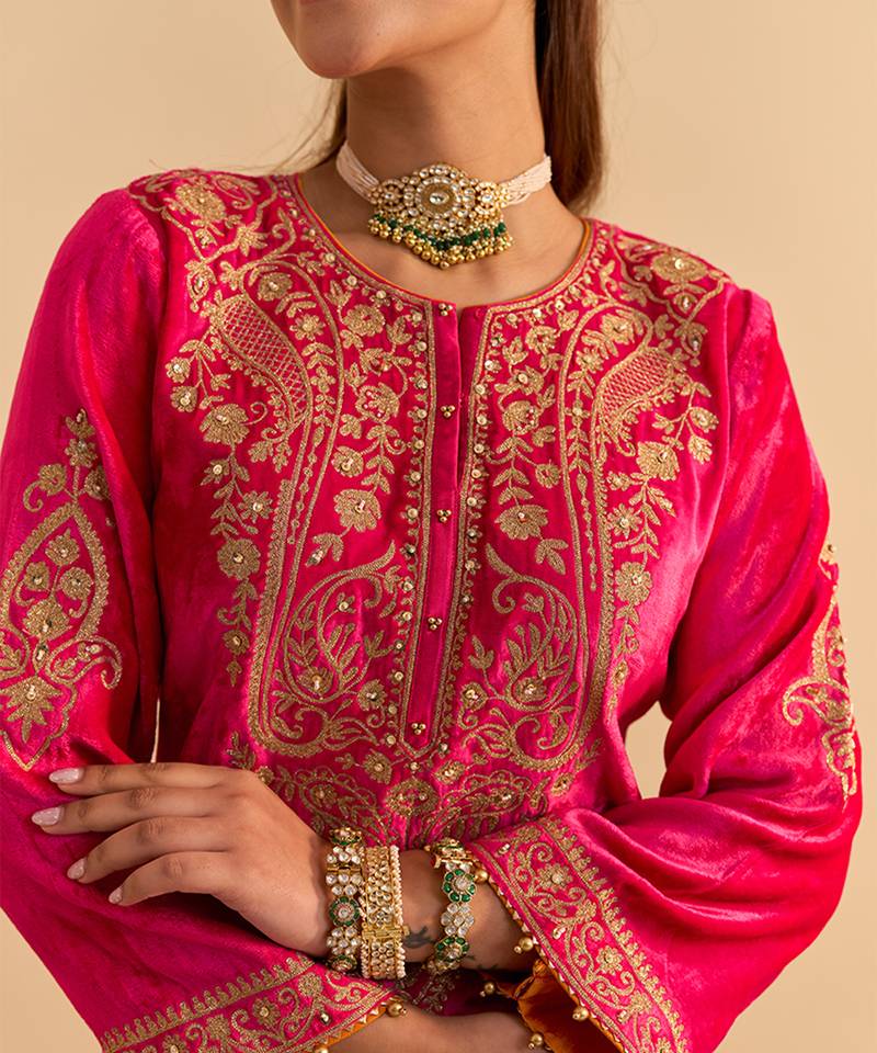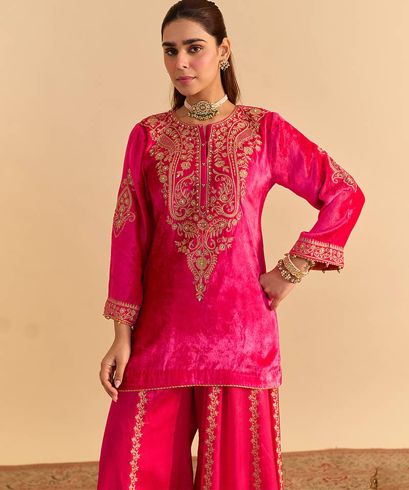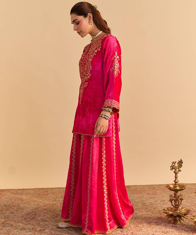 | Product Name | Pink Embroidered Velvet Sharara Set With Dupatta | |
