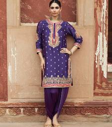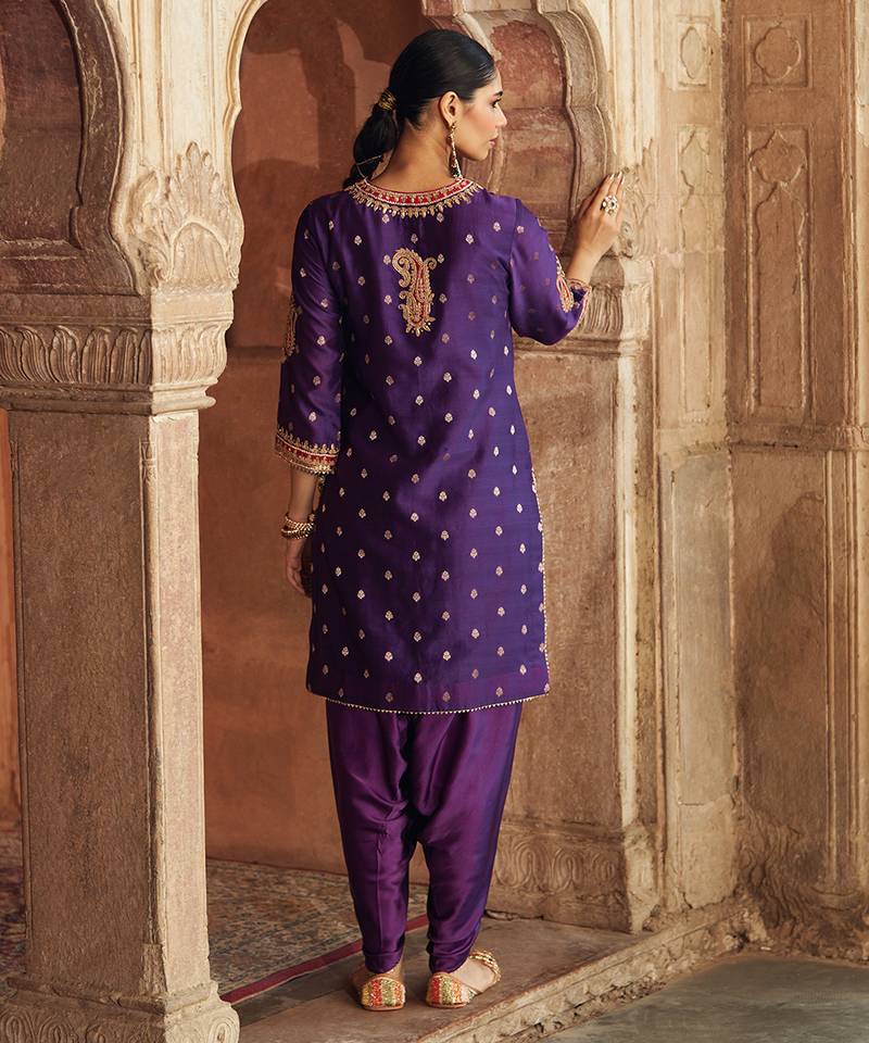 Purple embroidered chanderi silk kurta set