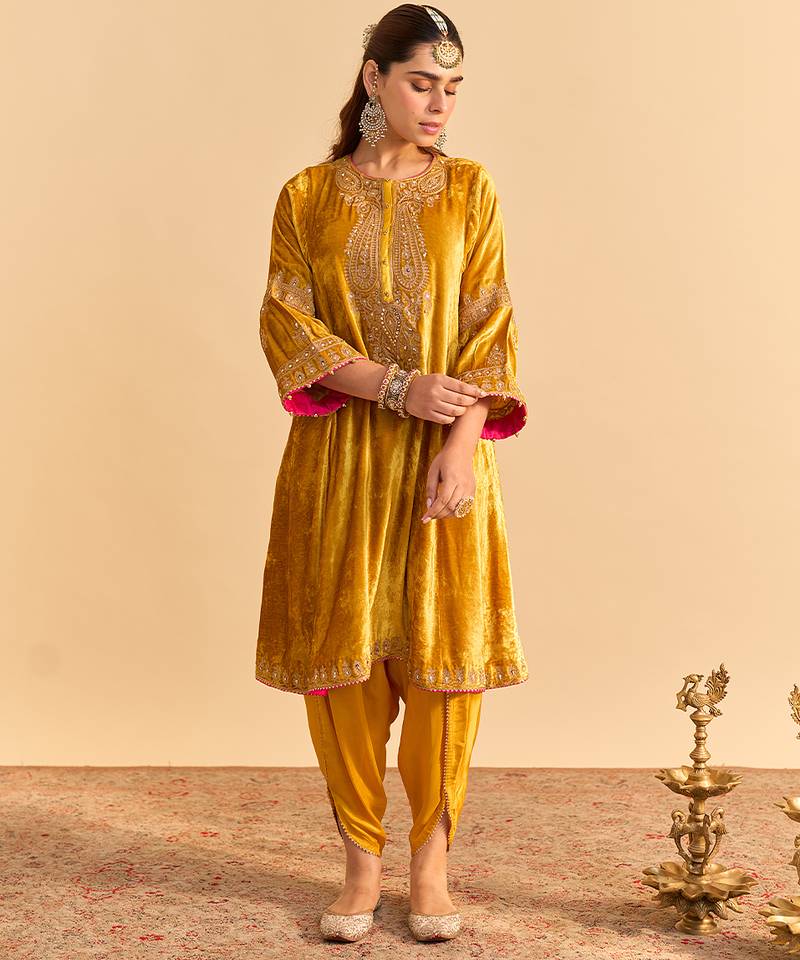 | Product Name | Yellow Embroidered Velvet Kurta Set With Dupatta | |