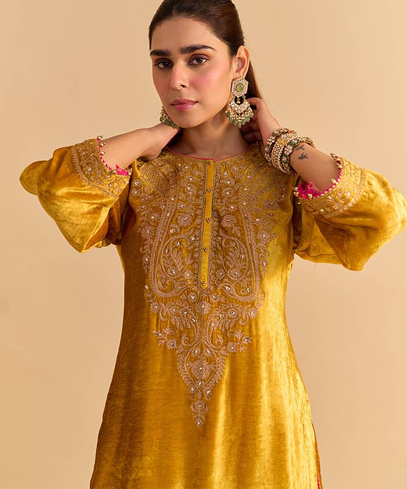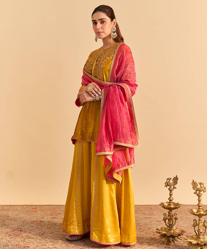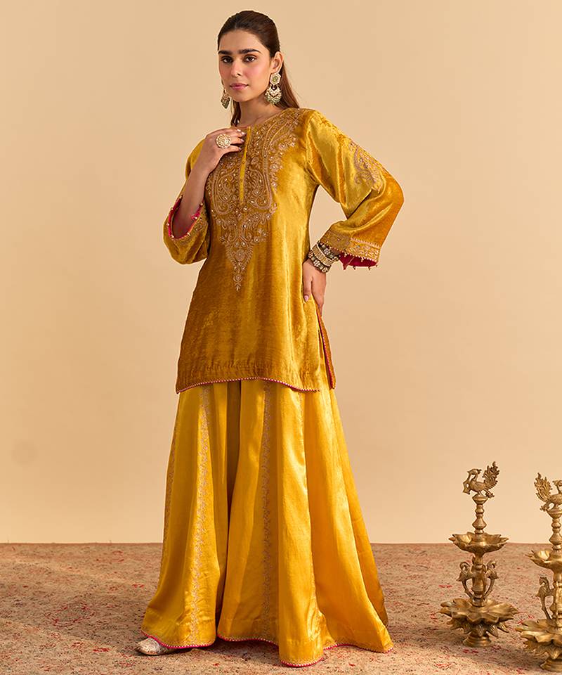 | Product Name | Yellow Embroidered Velvet Sharara Set With Dupatta | |