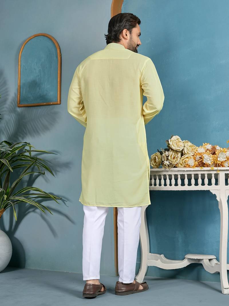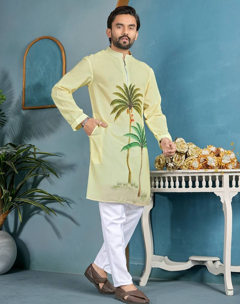 | Product Name | Men's Light Yellow Cambric Cotton Printed Kurta | |