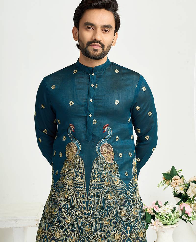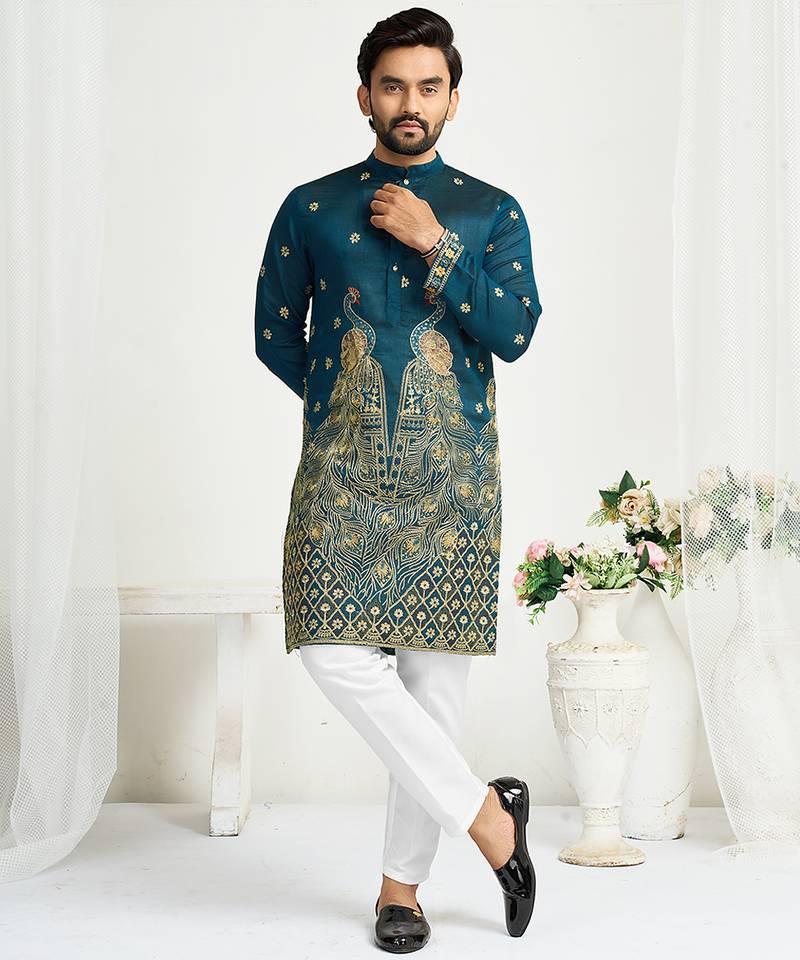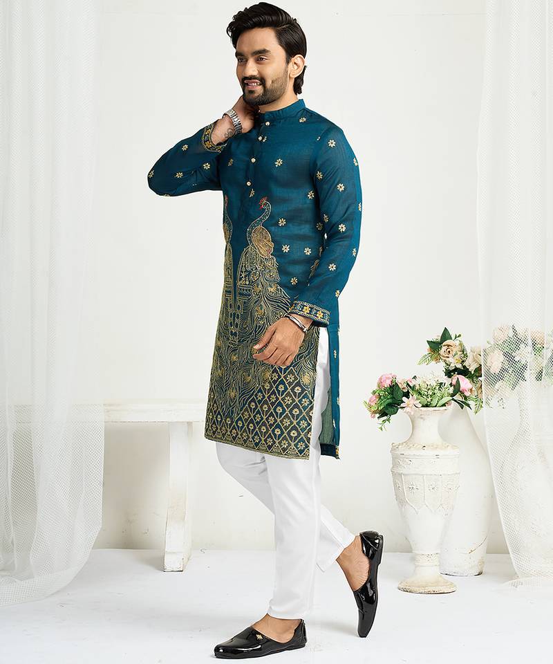 | Product Description | Step Into Timeless Elegance With This Blue Embroidered Men's Kurta, Highlighted By Majestic Peacock Style Embroidery On The Front. Designed For Festive Celebrations And Wedding Functions, This Kurta Combines Traditional Craftsmanship With Modern Flair. The Rich Blue Hue And Detailed Thread Work Reflect Cultural Sophistication, Making It A Standout Piece. Style It With Classic Bottoms To Complete Your Regal Ethnic Look. |