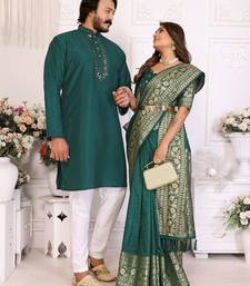 Product Name Teal Green Silk Couple Set Kurta And Saree With Jacquard Border