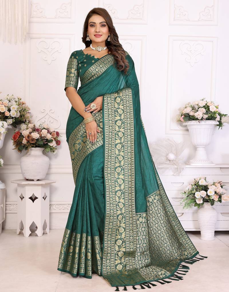This Elegant Teal Green Couple Set Is A Perfect Choice For Weddings And Festive Occasions. The Set Includes A Men’s Kurta Crafted From Silk Fabric, Offering A Classic And Refined Look. The Women’s Jacquard Weaving Silk Saree Features A Rich Jacquard Border That Adds A Touch Of Luxury And Tradition. The Saree Comes With An Unstitched Blouse Piece, Allowing Customization As Per Preference. A Graceful And Coordinated Ethnic Ensemble Ideal For Special Celebrations.
