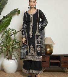 Black embroidered silk kurta palazzo and dupatta set stitched