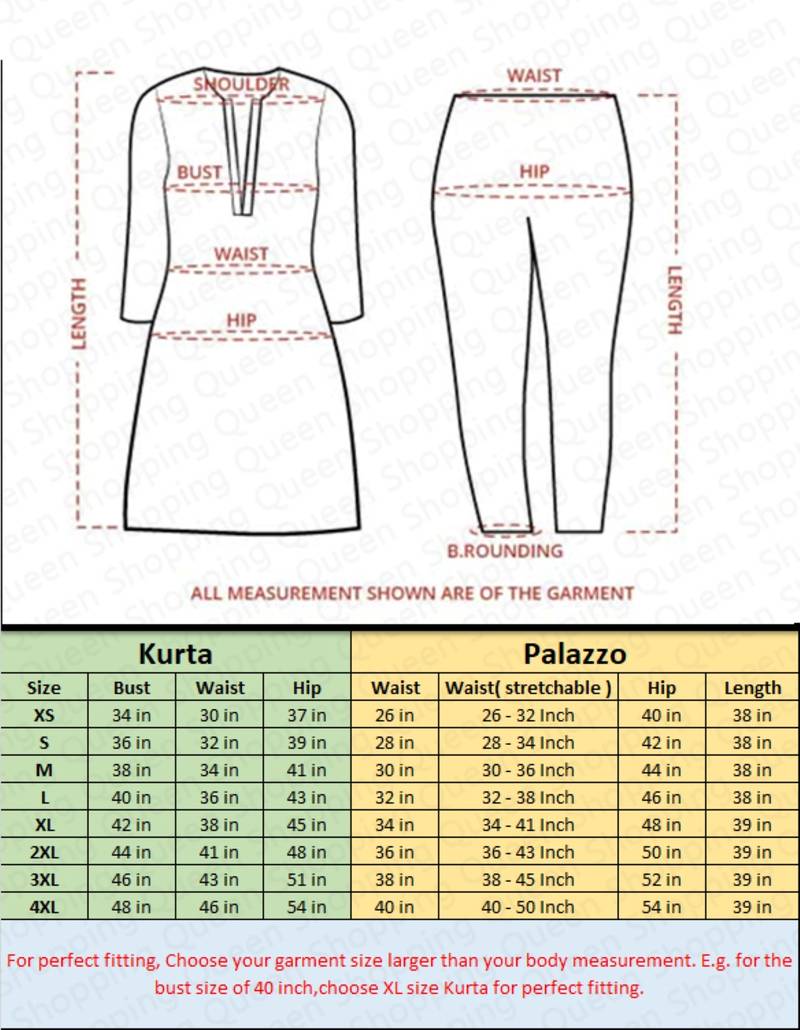 | Package Details | 1 Kurta / 1 Palazzo / 1 Dupatta | |
