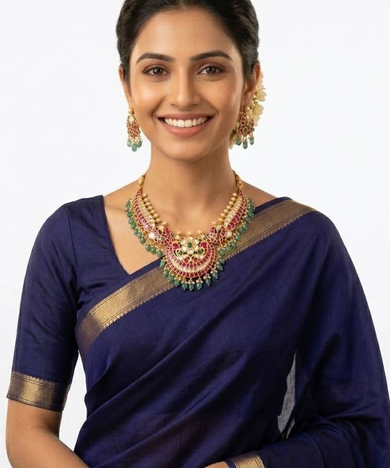 | Product Description | Graceful And Regal, The Morvaara Set Draws Inspiration From The Elegance Of Peacock Plumes And Traditional Royal Artistry. Intricately Handcrafted With Luminous Kundan Stones, Rich Ruby Tones, And Delicate Emerald Drops, This Statement Piece Is Designed To Command Attention. |