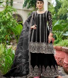 | Product Name | Black Real Mirror Chinon Silk Wedding Party Wear Sharara Salwar Suit With Net Dupatta Full Stitched Free Size | |