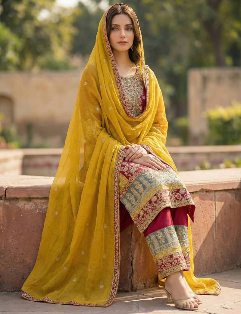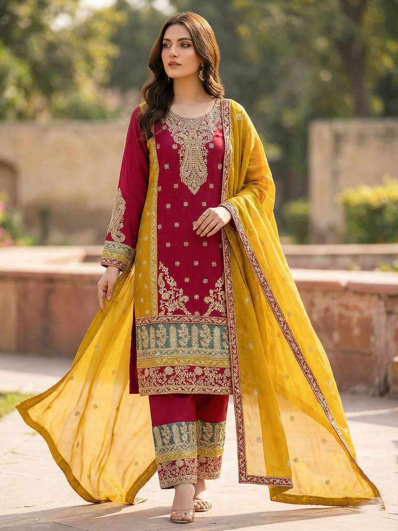 | • | Dupatta | : | Color- Maroon / Fabric- Chiffon |