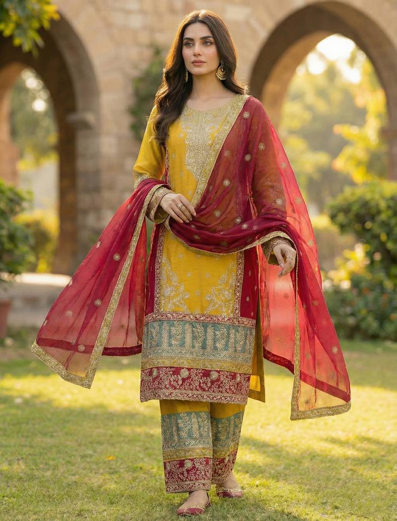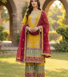 | Product Name | Yellow Chinon Embroidered Sharara Suit | |