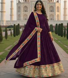 purple embroidered anarkali salwar suit semi stitched